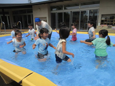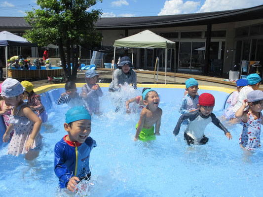 猛暑が続いた今年の夏。熱中症警戒アラートが発令され、プール活動を控える日もありましたが、乳児クラスも幼児クラスも思う存分水あそびを楽しむことができました。ダイナミックにあそび、またひとまわり体も心も成長したことと思います。